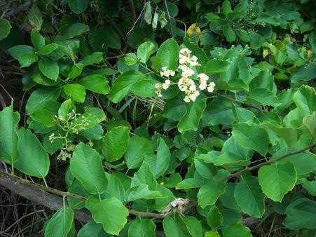 White Manjack (Cordia dentata) is another native species which survives even though it has little economic value in the Virgin Islands simply because it is virtually impossible to kill. Never park a car under the tree as the sap from the berries will strip the paint off you car. Even droppings from a bird which has eaten the berries will destroy the finish.