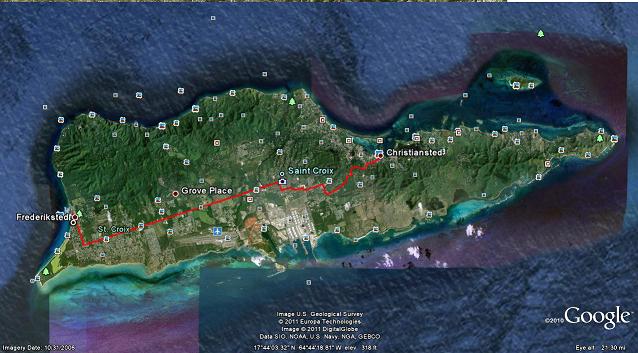 I had a great day on July 3, doing the Fort Christiansted to Fort Frederiksted, 15 mile, walk in about four hours and forty minutes or a pace of 3.2 miles per hour which was good enough to put me in the middle of the pack. This walk was billed as a re-creation of the historic Fort to Fort walk of July 3, 1848, which resulted in emancipation and I’m sure the organizer, Senator Positive Nelson, would have liked a very tight formation as we entered town as a political statement.