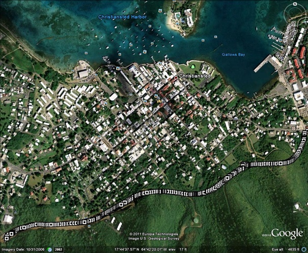 My friend Tom has been hiking along the Christiansted Bypass and I invited myself along with my grandchildren. We were joined by our friend John who used my camera to take pictures. We started at Contentment and walked the 1.2 miles to the intersection at Mt. Welcome on a Sunday to avoid any construction activity. The kids loved the freedom to run ahead in the absence of any traffic or people.