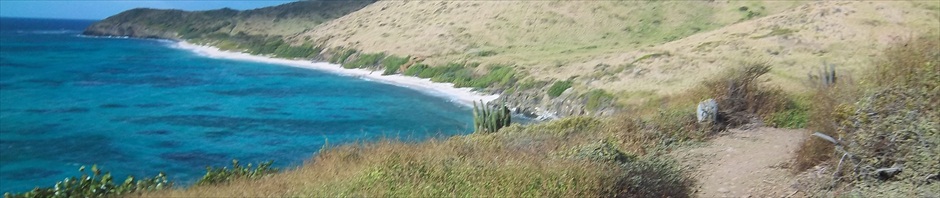 East End. This is the desert end of the island and the hike goes form sea level to 700 foot with beautiful views of Buck Island, the hills and two 1 mile long beaches. There are very few signs of houses or utilities and probably never will be as half is controlled by the nature Conservancy and the other half by the government. I rarely see more that a couple other people. This is a fairly strenuous walk.
